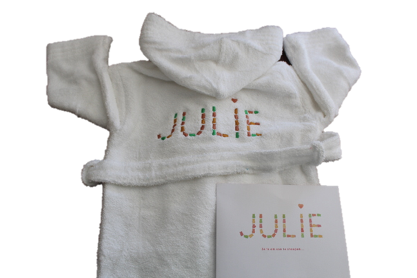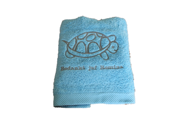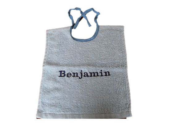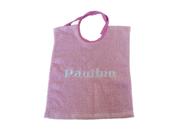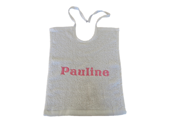 Dit witte slabbetje is superpraktisch! Het ziet er niet alleen goed uit, het absorbeert ook vlot nattigheid en zorgt ervoor dat de kleertjes schoon blijven. Allen met koordjes zodat het steeds opnieuw gewassen kan worden (tot 95°C) Bestaat in 3 uitvoeringen: - Standaard vierkante slabbetje - Afgerond slabbetje - Extra lange slab (ideaal voor de dreumes/peuter) Gelieve bij opmerkingen mee te geven: - Wat er op het slabbetje geborduurd mag worden (naam, logo, afbeelding...) - In welk kleur dit geborduurd mag worden: donkerblauw, lichtblauw, bruin, geel, grijs, donkergroen, lichtgroen, oranje, paars, rood, lichtroze, fushia, wit, zwart, zilver of goud. Meer kleuren zijn beschikbaar op aanvraag. - In welk lettertype het geborduurd mag worden: alle lettertypes zoals in word en op dafont.be zijn mogelijk
