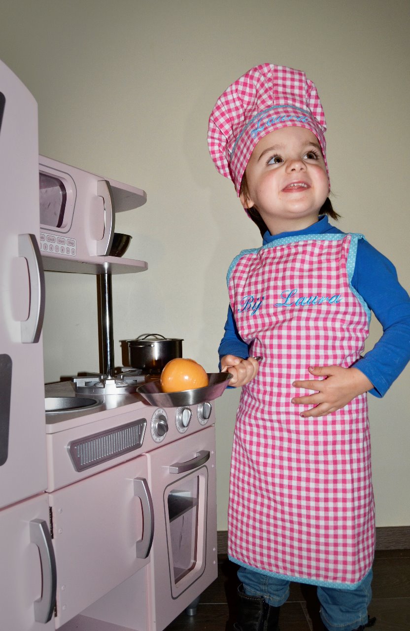 Een mooie keukenschort in roze-wit om de keukendromen te laten uit komen. Beide zijn van 100% katoen en met de naam erop. Ook andere originele boodschappen zijn mogelijk!