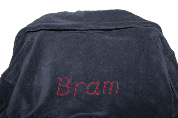 Een zalig zachte blauwe kamerjas met tekst op naar keuze. De kamerjas is beschikbaar in S en M, maar tailleert groot. De kamerjas bestaat ook in de het wit. Gelieve bij opmerkingen mee te geven: - Wat er op de handdoek geborduurd mag worden (naam, logo, afbeelding...) - In welk kleur dit geborduurd mag worden: donkerblauw, lichtblauw, bruin, geel, grijs, donkergroen, lichtgroen, oranje, paars, rood, lichtroze, fushia, wit, zwart, zilver of goud. Meer kleuren zijn beschikbaar op aanvraag. - In welk lettertype het geborduurd mag worden: alle lettertypes zoals in word en op dafont.be zijn mogelijk