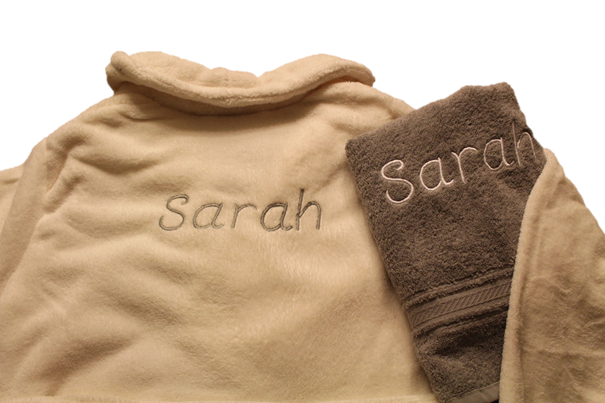 Een zalig zachte witte kamerjas met tekst op naar keuze. De kamerjas is beschikbaar in S en M, maar tailleert groot. De kamerjas bestaat ook in de het wit. Gelieve bij opmerkingen mee te geven: - Wat er op de handdoek geborduurd mag worden (naam, logo, afbeelding...) - In welk kleur dit geborduurd mag worden: donkerblauw, lichtblauw, bruin, geel, grijs, donkergroen, lichtgroen, oranje, paars, rood, lichtroze, fushia, wit, zwart, zilver of goud. Meer kleuren zijn beschikbaar op aanvraag. - In welk lettertype het geborduurd mag worden: alle lettertypes zoals in word en op dafont.be zijn mogelijk