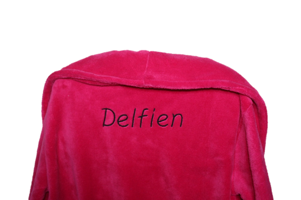 Een zalig zachte roze kamerjas met tekst op naar keuze. De kamerjas is beschikbaar in S en M, maar tailleert groot. De kamerjas bestaat ook in de het wit. Gelieve bij opmerkingen mee te geven: - Wat er op de handdoek geborduurd mag worden (naam, logo, afbeelding...) - In welk kleur dit geborduurd mag worden: donkerblauw, lichtblauw, bruin, geel, grijs, donkergroen, lichtgroen, oranje, paars, rood, lichtroze, fushia, wit, zwart, zilver of goud. Meer kleuren zijn beschikbaar op aanvraag. - In welk lettertype het geborduurd mag worden: alle lettertypes zoals in word en op dafont.be zijn mogelijk
