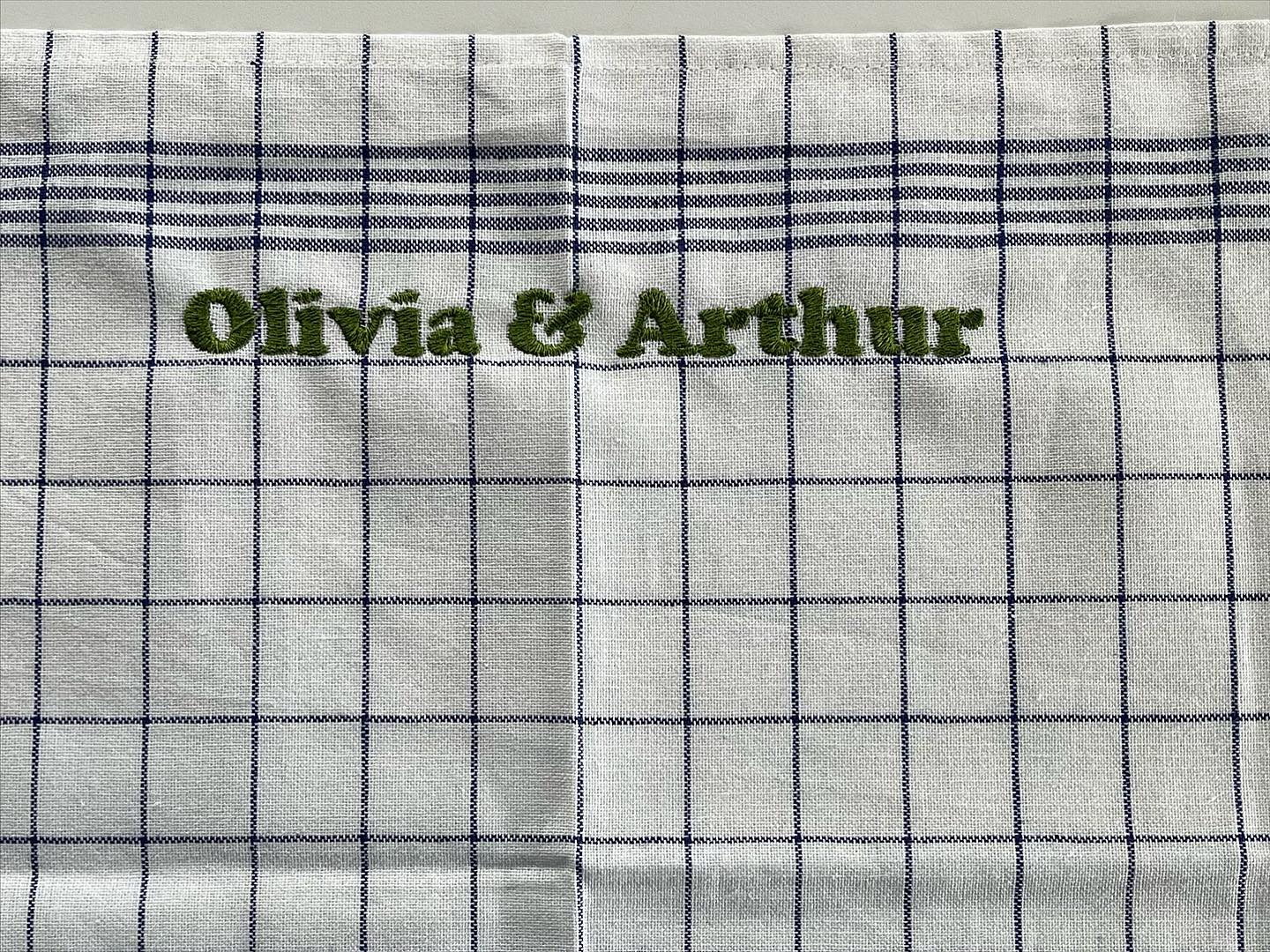 Gepersonaliseerde blauwe keukenhanddoek