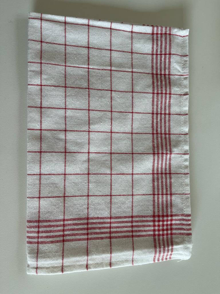 Deze heerlijk stevige keukenhanddoek is gemaakt van 52% linnen en 48% katoen voor een extra vochtabsorberend vermogen. Geniet van je propere vaat met deze heerlijke keukenhanddoek. Verkrijgbaar rood en blauw. Gelieve bij opmerkingen mee te geven: - Wat er op de handdoek geborduurd mag worden (naam, logo, afbeelding...) - In welk kleur dit geborduurd mag worden: donkerblauw, lichtblauw, bruin, geel, grijs, donkergroen, lichtgroen, oranje, paars, rood, lichtroze, fushia, wit, zwart, zilver of goud. Meer kleuren zijn beschikbaar op aanvraag. - In welk lettertype het geborduurd mag worden: alle lettertypes zoals in word en op dafont.be zijn mogelijk